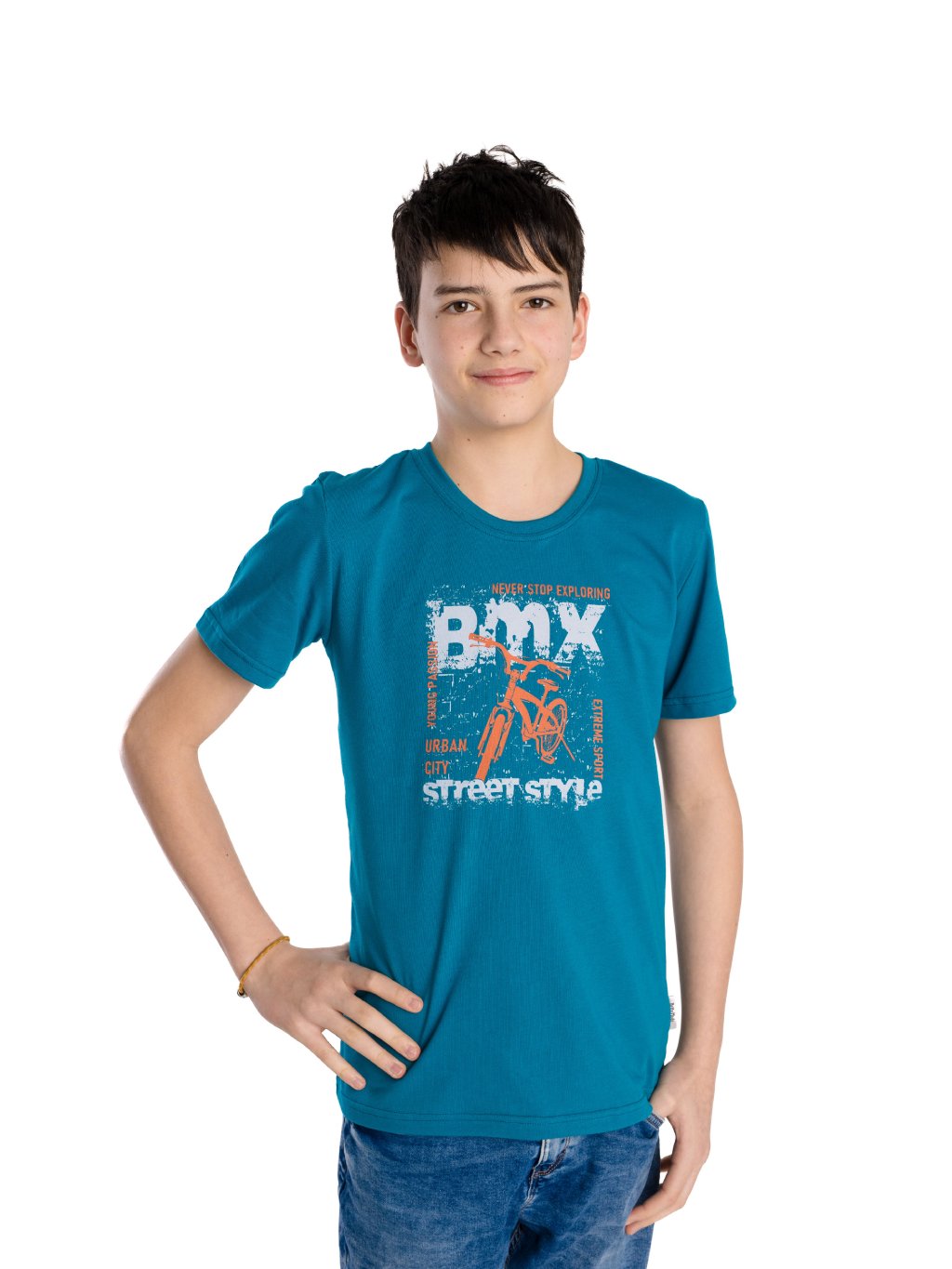 Chlapecké bavlněné tričko modré barvy s originálním nápisem. Příjemné na nošení pro pohodu po celý den. Ušito na Moravě.