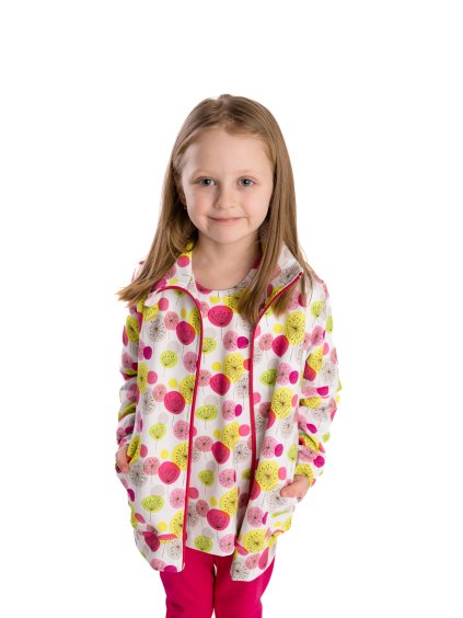 Dívčí bavlněná mikina na zip. Rukávy a pas ukončeny pružnou manžetou, krytka zipu u krku.