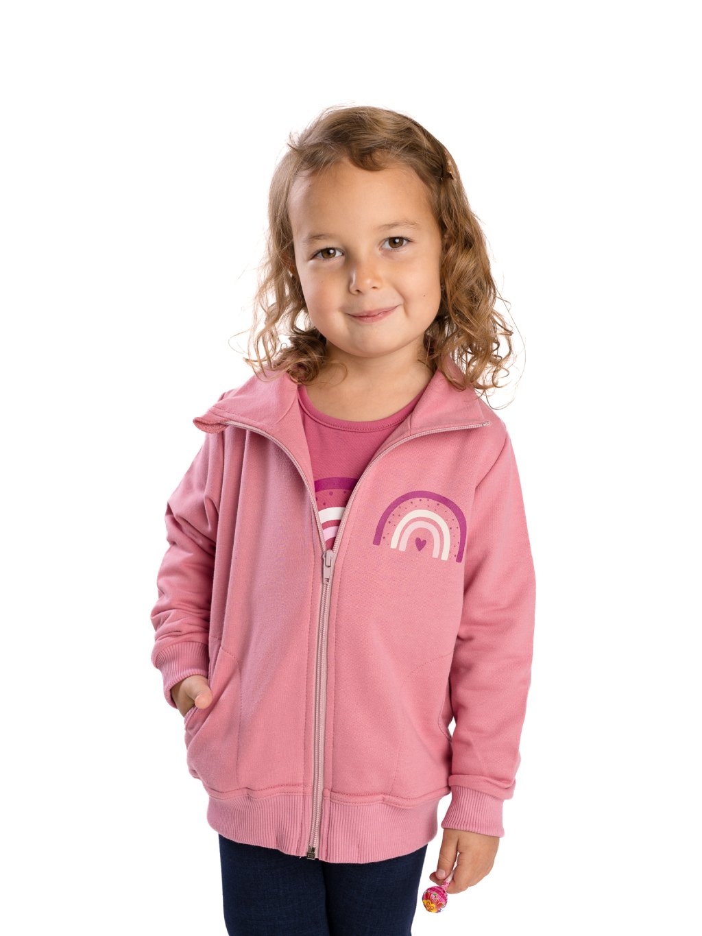 Dívčí bavlněná mikina na zip. Rukávy a pas ukončeny pružnou manžetou, krytka zipu u krku.