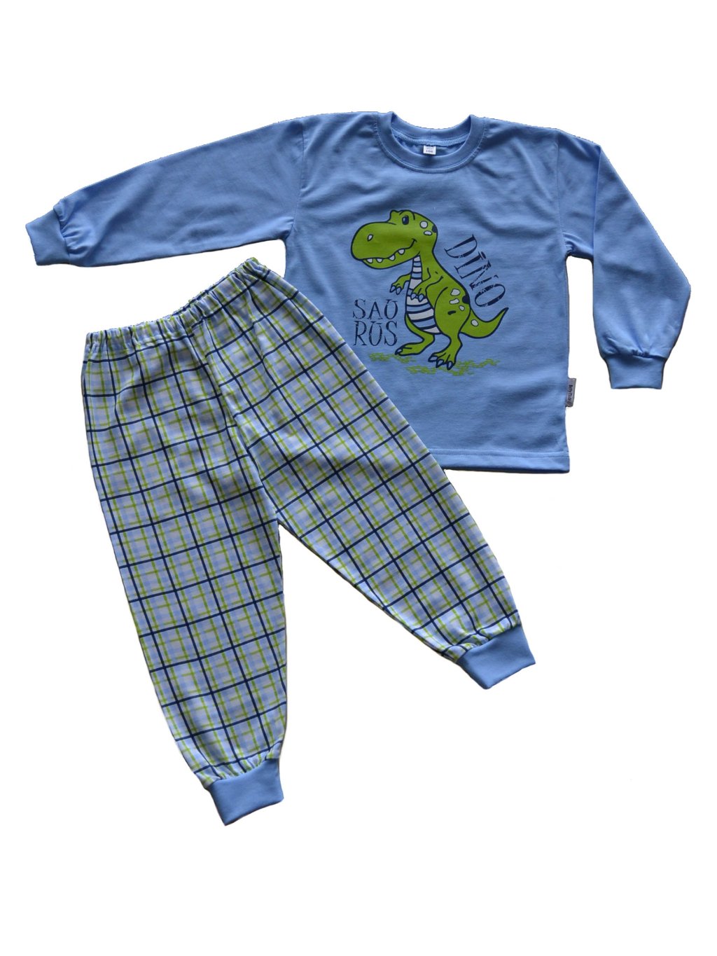 Dětské pyžamo s dinosaurem. Příjemná 100% bavlna ideální pro klidnou noc a krásné sny. Pyžamo je ušito od střihu až po zabalení v České republice. Materiál 100% bavlna – certifikace použitého materiálu Oeko-Tex Standard potvrzuje kvalitu našich výrobků.