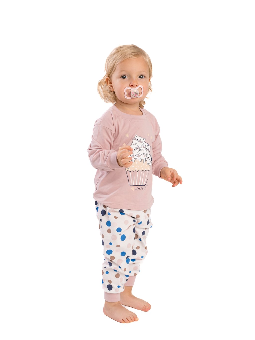 Bavlněné pyžamo s dlouhým rukávem. Pružný úplet kolem krku pro snadné oblékání a pohodlné manžety na rukávech i nohavicích. V pase guma na volno, která nikde netlačí a lze vyměnit.