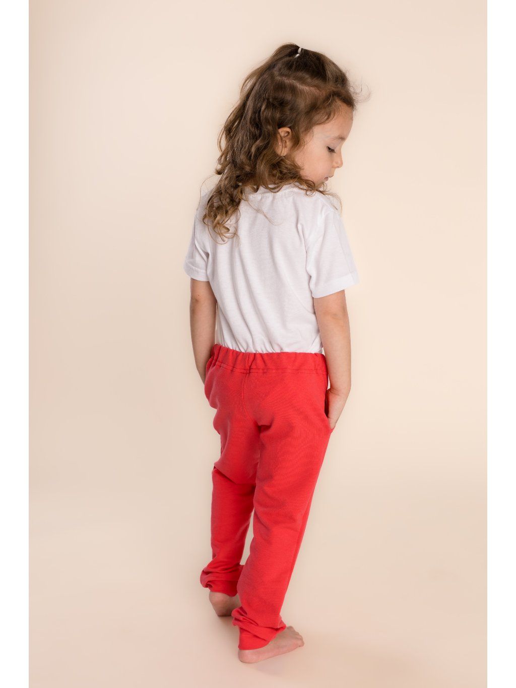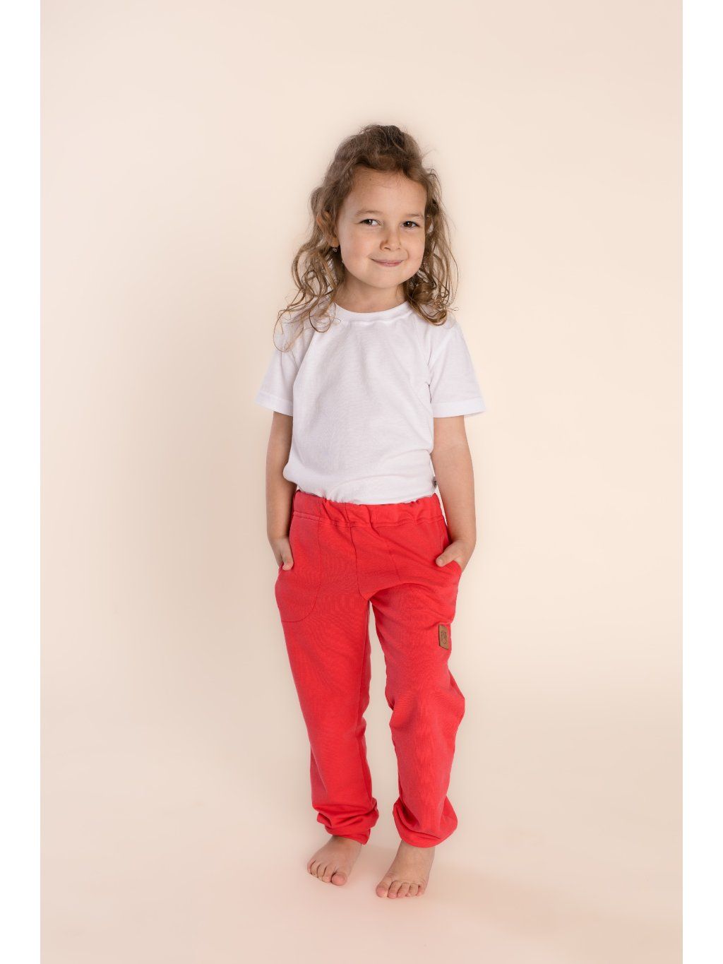 Osvědčený střih a pohodlné ukončení nohavic do bavlněného úpletu. Guma v pase vložena volně a vyšitá dírka pro možnost regulace. Krásná korálová barva.