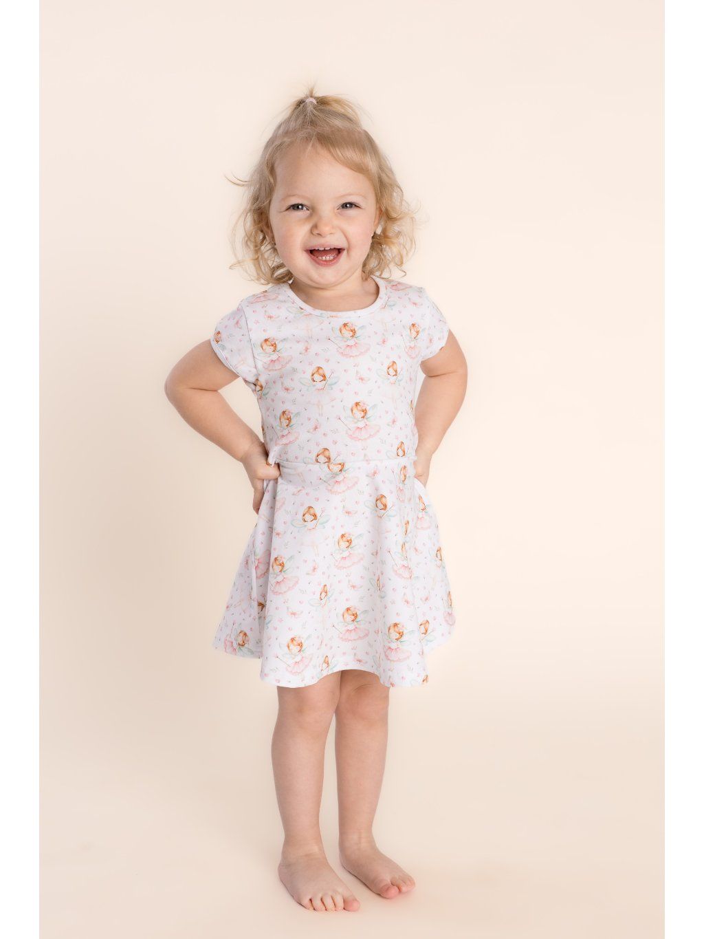 Dívčí šaty s kulatým výstřihem a krátkým rukávem skvěle padnou všem holčičkám. Hodí se pro každou příležitost. Díky elastickému lemu a ověřenému tvaru střihu se dobře oblékají přes hlavu. V jemných pastelových barvách - světle růžová,světle tyrkysová a bílá.