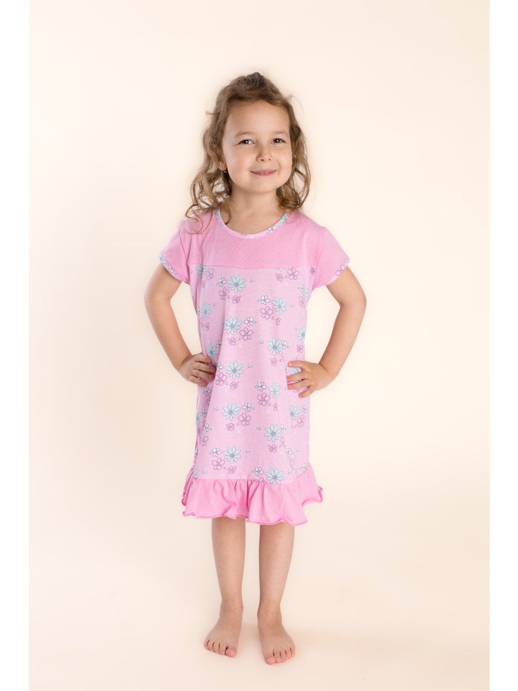 Je vyrobena z příjemné bavlny, která zajistí pohodný a klidný spánek. Volnější a delší střih, 100% bavlna. Z přední strany celotištěná, zadní strana v barvě pastelově růžové.